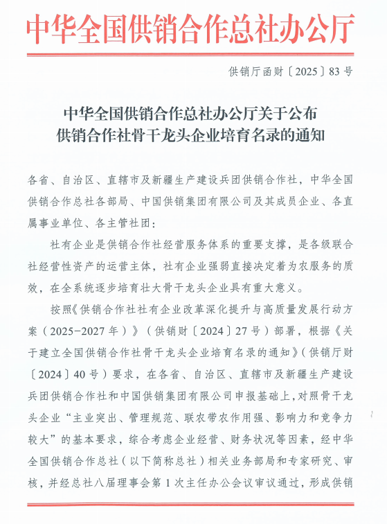 近日,中华全国供销合作总社办公厅正式公布供销合作社骨干龙头企业培育名录,山西省中药材集团有限公司成功入选,这是对集团公司贯彻落实省社“五张网”部署,积极构建中药材“一张网”工作的高度认可与有力肯定。山西省中药材集团有限公司成立以来严格遵照总社和省社要求,深耕中药材产业,切实发挥行业示范引领作用,在产业链协同、利益联结机制构建等方面持续发力,助力乡村振兴,效果显著。